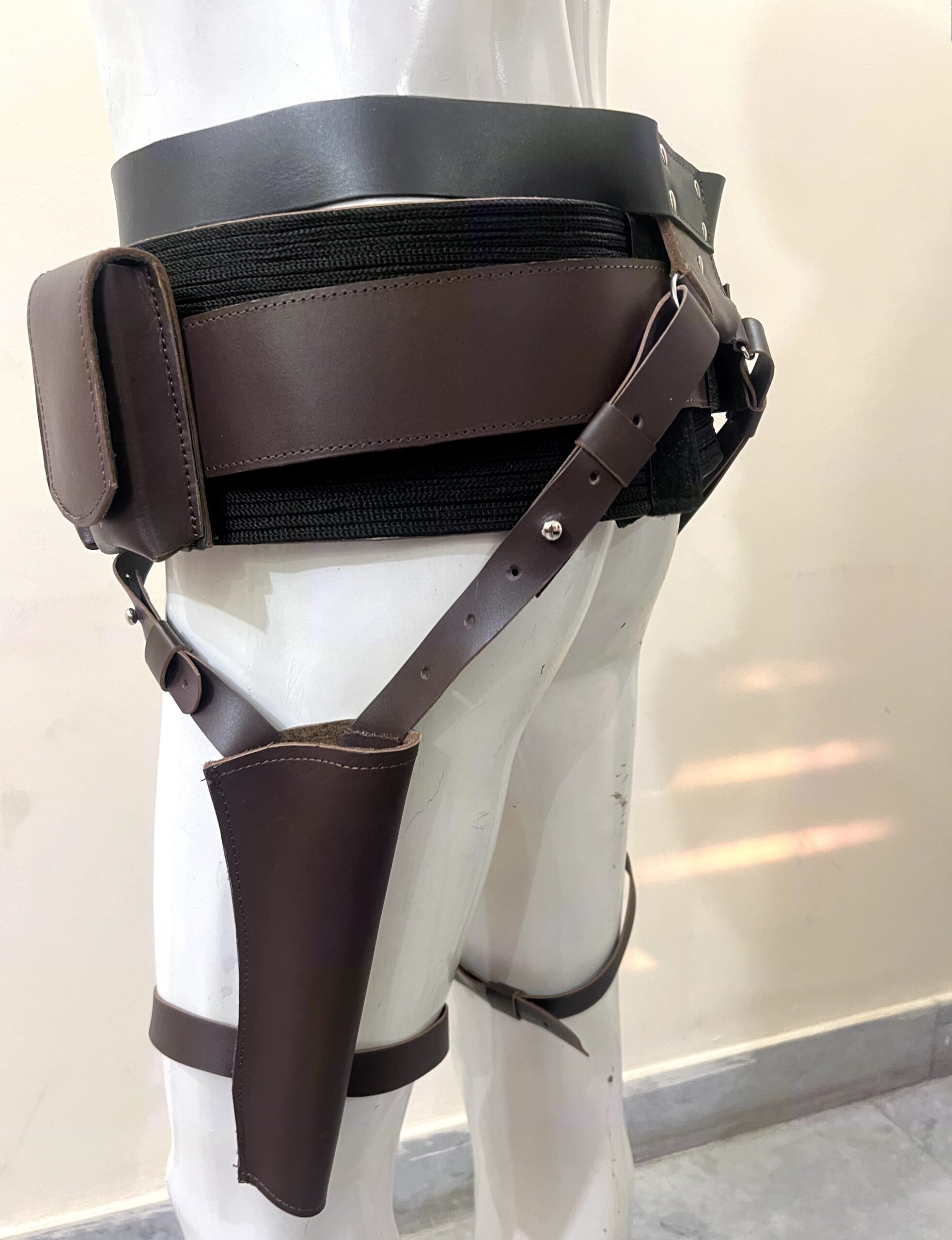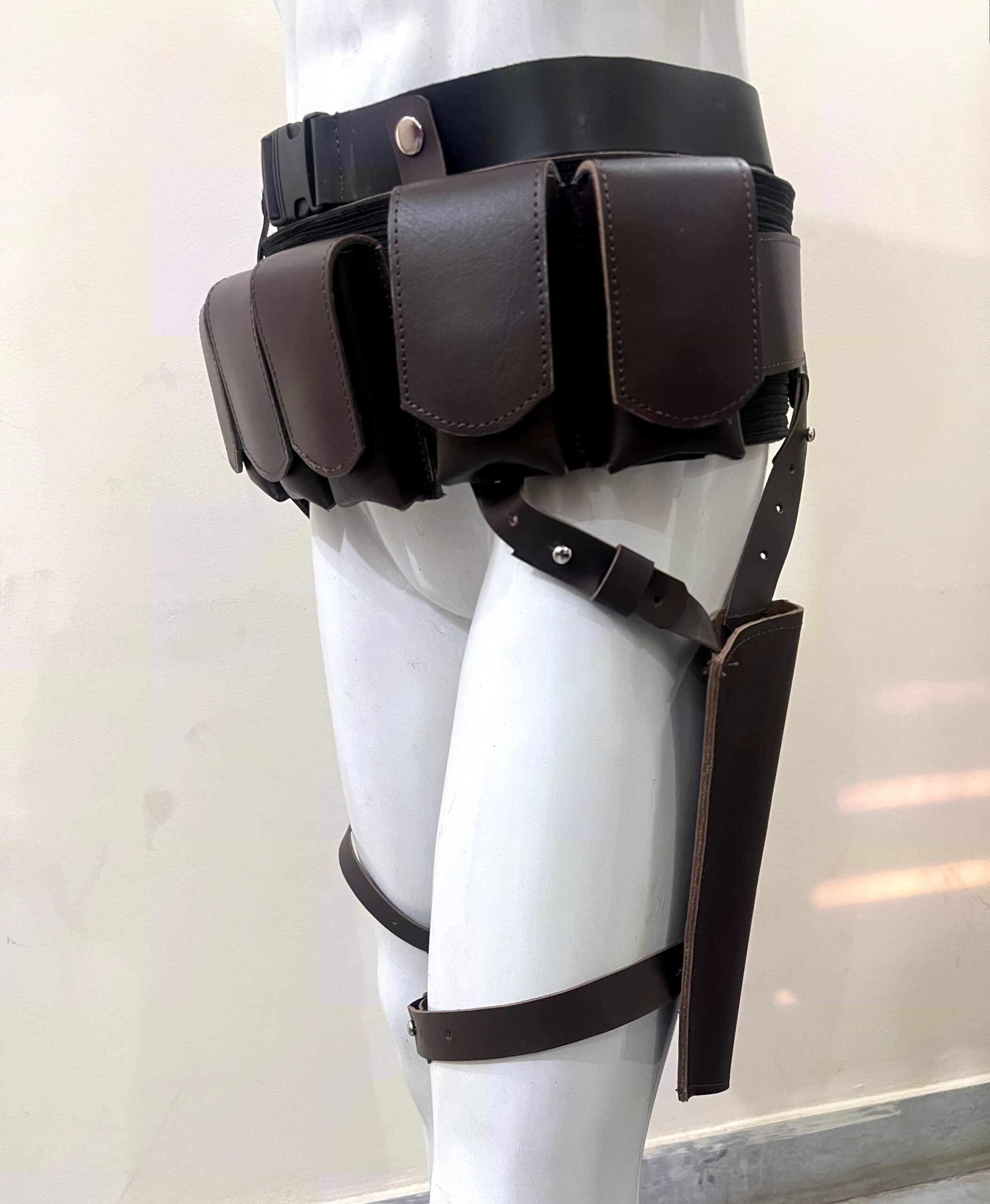 Complete your Mandalorian look with the Mandalorian Belt. Crafted from high-quality leather, this ammo belt features a rugged, authentic design that replicates the iconic belt worn by the Mandalorian in the series. Perfect for cosplayers and fans, it adds the finishing touch to your Star Wars costume.